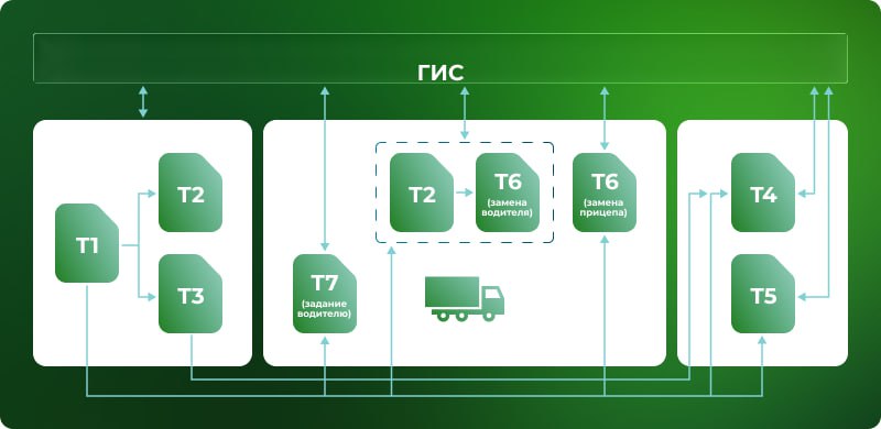 Еще одно изменение в обмене данными с ГИС ЭПД — возможность создать титул Т7 в любой момент после выхода транспорта на маршрут и до его возвращения в гараж. После окончания перевозки нужно сформировать и заполнить Т4 и Т5.