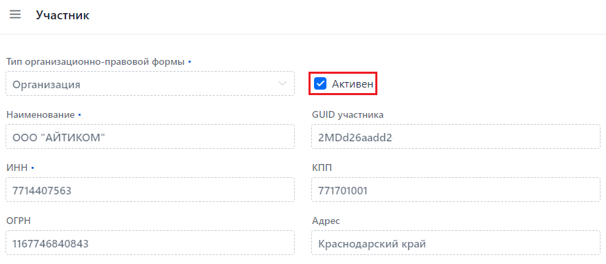 В открывшемся окне проверьте стоит ли галочка «Активен», если нет, требуется заполнить все поля, после чего поставить галочку на «Активен».