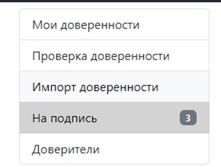 | После отправки на подписание доверенности пользователи с типом членства «Администратор» в создании доверенности больше не участвуют, дальнейшие действия осуществляет только пользователь «Доверитель», указанный ранее в доверенности. |