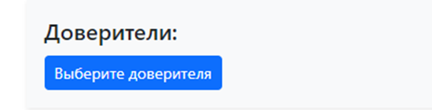 В списке выбора доверителя отображаются все организации или ИП у которых пользователь имеет тип членства как Доверитель, Администратор.
