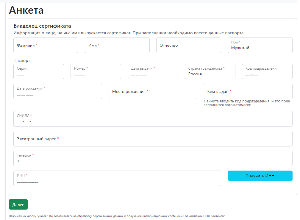 По присланной индивидуальной ссылке необходимо заполнить все обязательные поля.