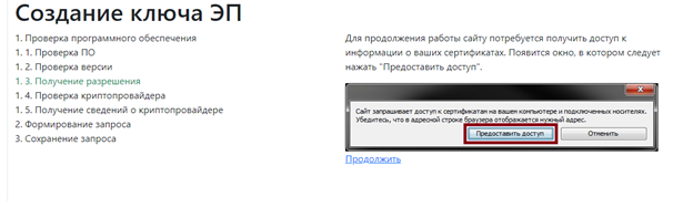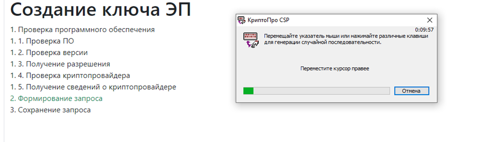 После успешного прохождения сверки личности, по присланной первоначально индивидуальной ссылке обновиться информация и откроется возможность создания ключа ЭП.