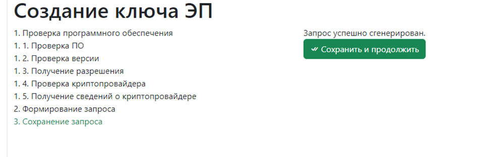 Запрос успешно сгенерирован необходимо нажать «Сохранить и продолжить»