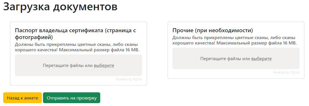 После необходимо загрузить паспорт, прочие документы и отправить на проверку.