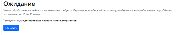 Проверка первичных документов занимает от 10 минут, после проверки страница обновиться автоматически.