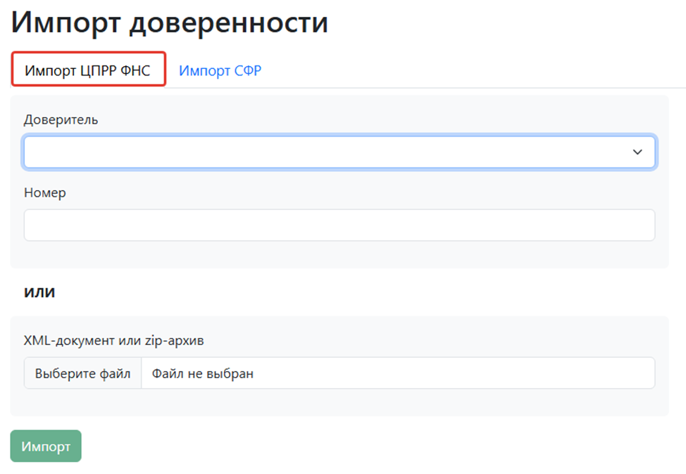 Перейдите в раздел «Импорт доверенности».