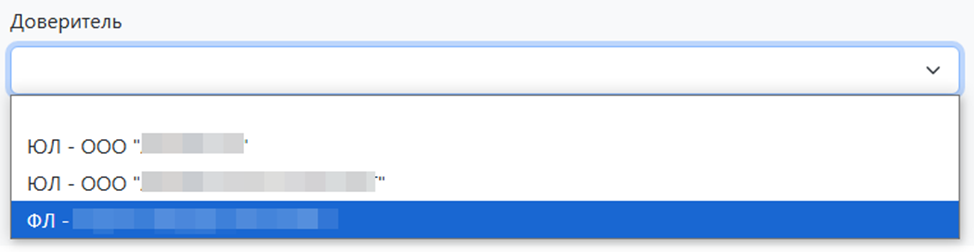 Выберите Доверителя из выпадающего списка.