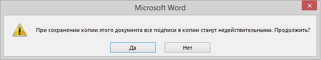 Если нажать кнопку Да, все подписи в документе станут недействительными.