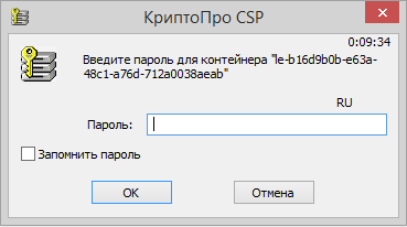 Если для доступа к ключевому контейнеру требуется задать пароль — появится окно ввода пароля.