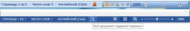 В строке состояния окна документа появится значок, свидетельствующий о том, что данный документ имеет электронную подпись.