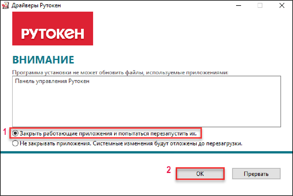 1. Перед началом обновления комплекта драйверов рекомендуется закрыть все работающие приложения и отсоединить устройства Рутокен от компьютера.