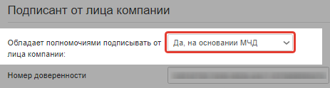 В профиле сотрудника укажите, что он может подписывать документы от имени компании выбрав «Да, на основании МЧД».