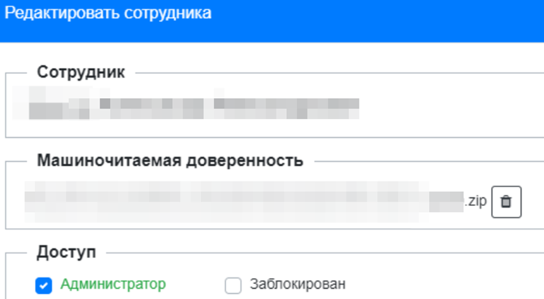 После того, как вы добавили файл доверенности, не забудьте сохранить внесенные изменения, нажав на соответствующую кнопку. Для удаления или замены файла нажмите на кнопку с изображением корзины.