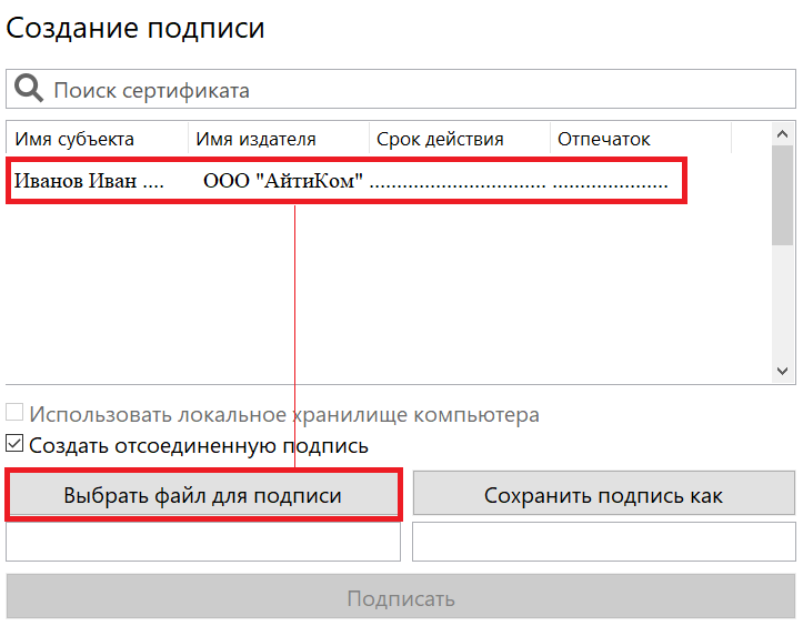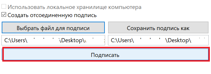 6. Когда подпись и файл выбраны, галочка стоит нажмите «Подписать»