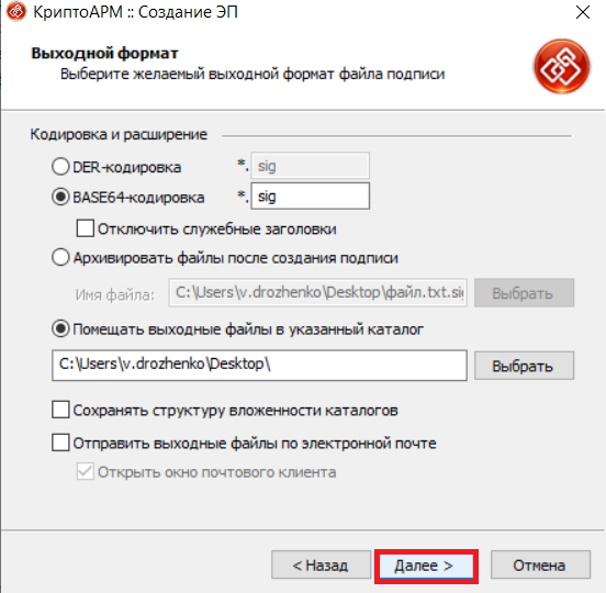 5. Если вам требуется выбрать кодировку (DER или BASE64) выберете ее здесь, если нет просто нажмите «Далее»