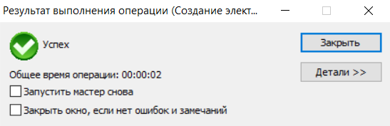 9. Появится окно, которой покажет результат вашего подписания, если там написано «Успех» значит вы все сделали верно
