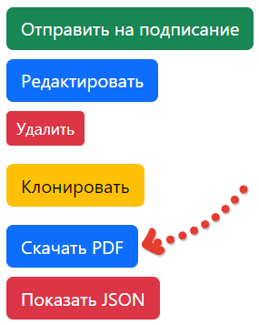 Для машиночитаемых доверенностей кнопка скачивания печатной формы в формате PDF становится доступна, начиная со статуса «проверена» и остаётся доступна на всех последующих статусах в сервисе.
