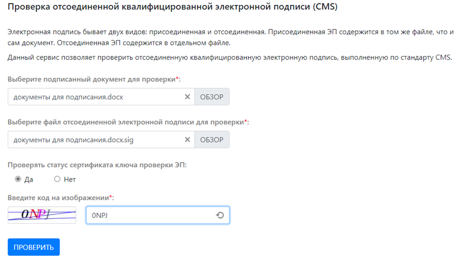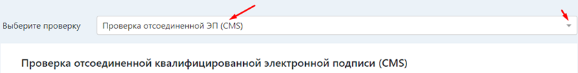 Выбирать проверку «Проверка отсоединённой ЭП (CMS)«