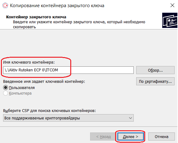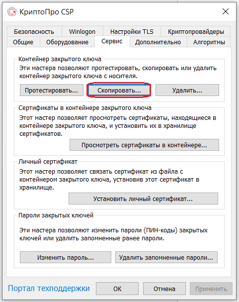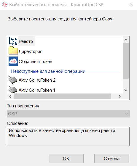 Копирование с помощью КриптоПро CSP
