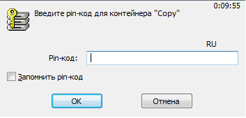 В окне ввода укажите pin-код от носителя.