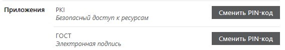 2.Напротив интересующего раздела PKI\ГОСТ нажмите на кнопку «Сменить PIN-код».