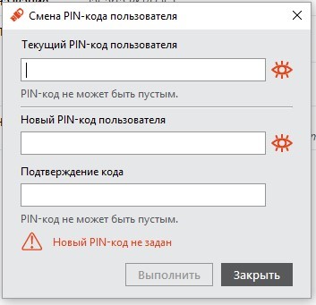 Чтобы сменить пин-код Пользователя части PKI\ГОСТ: