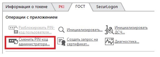 Чтобы сменить пин-код Администратора части PKI\ГОСТ: