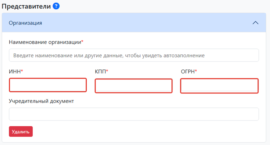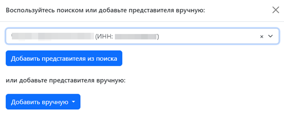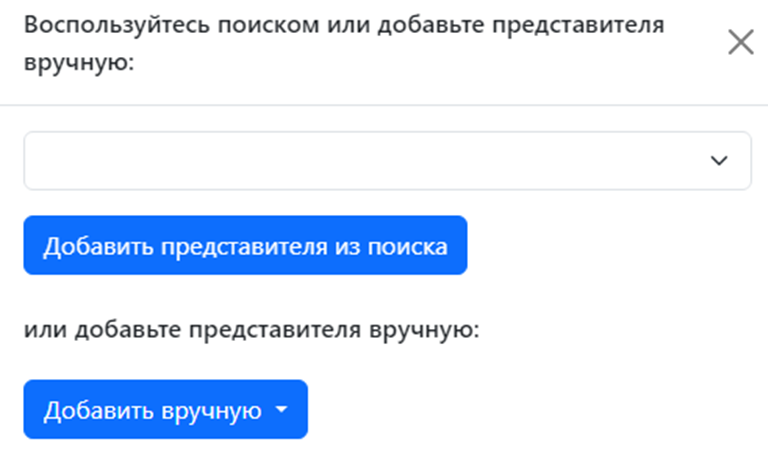 Укажите представителя, нажав на кнопку «Выберите представителя»