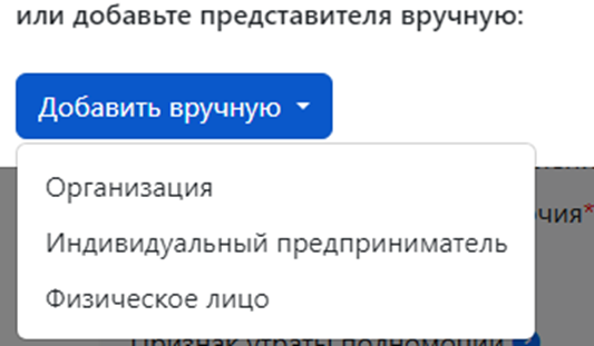 Также доступна функция ручного добавления организации, индивидуального предпринимателя или физического лица
