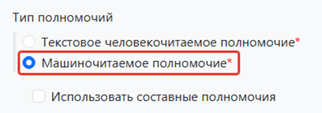 Установите тип полномочий «Машиночитаемое полномочие»