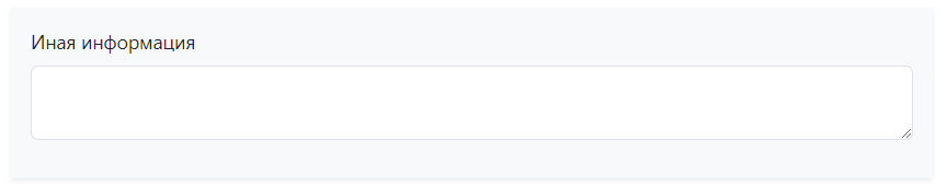 | Настоятельно рекомендуется оставлять поле «Иные сведения» пустым. Заполнение поля приводит к гарантированному отказу в её (дополнительной) регистрации для взаимодействия с Федеральной налоговой службой. |