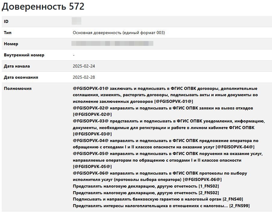 - Удалить – полностью удаляет доверенность из системы.