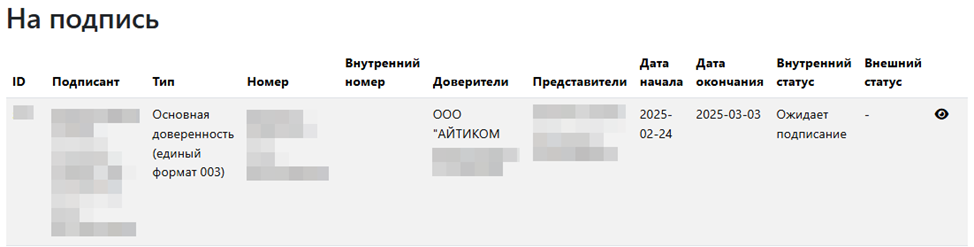 Открыв раздел, для подписания необходимо выбрать интересующую нас доверенность.