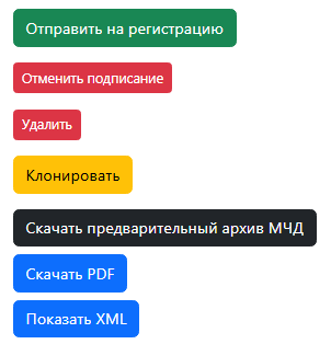 - Скачать предварительный архив МЧД — скачивается архив с xml файлом и откреплённой подписью, но не зарегистрирован в ФНС