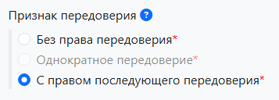 Выберите признак передоверия: