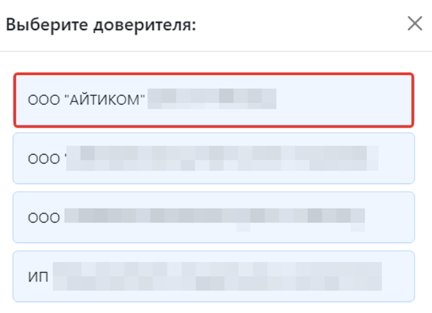 В открывшемся окне отобразятся все организации, в которых пользователь состоит как доверитель, администратор или представитель.
