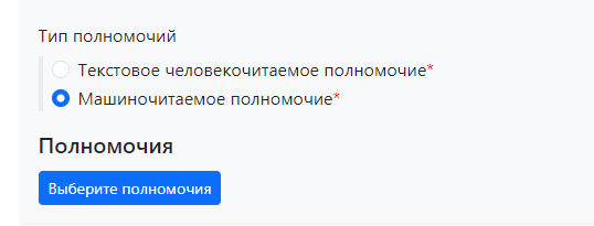 Установите тип «Машиночитаемое полномочие» и нажмите «Выберите полномочие».