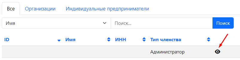 В поиске можно выбрать всех пользователей, которые добавлены к организации/ИП с типом членства представитель, администратор.