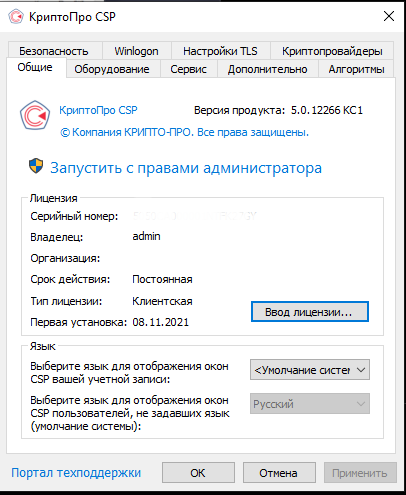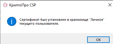 10) Если сертификат установлен впервые, то будет получено сообщение
