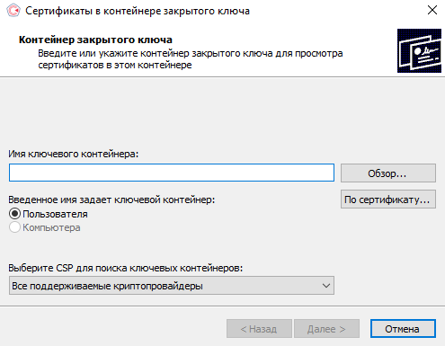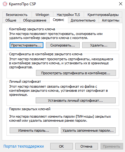 4) На вкладке «Сервис» нажмите на кнопку «Просмотреть сертификаты в контейнере«