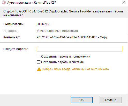 8) Введите Pin-код Вашего электронного ключевого носителя. Нажмите «ОК»