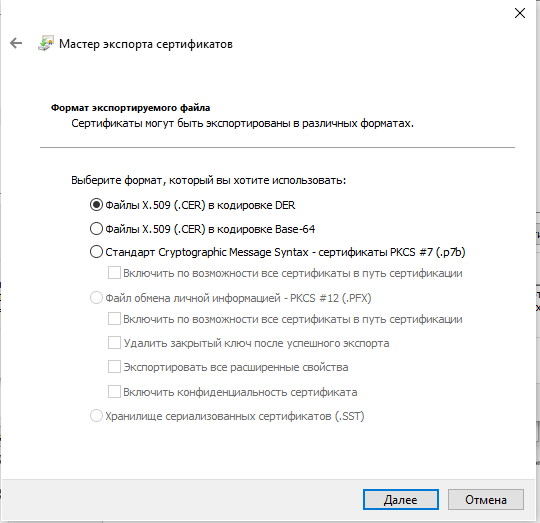 4. Следовать инструкции «Мастера импорта сертификатов».