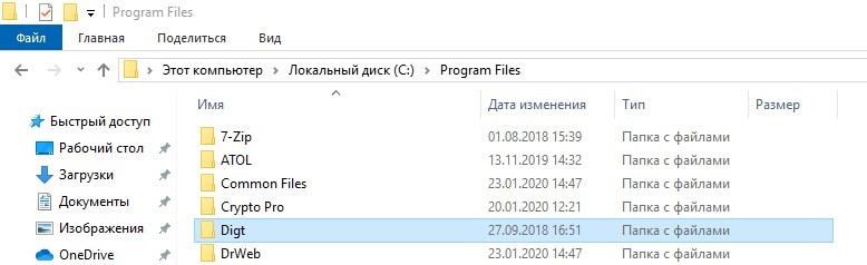 2. Проверьте, осталась ли папка Digt в каталоге Program Files, если она присутствует её необходимо удалить (дополнительно проверьте каталог Program Files (х86) если используете 64-х разрядную систему Windows);