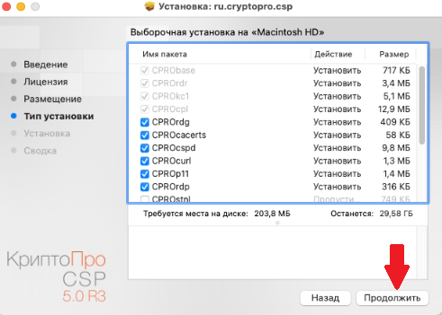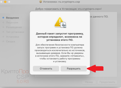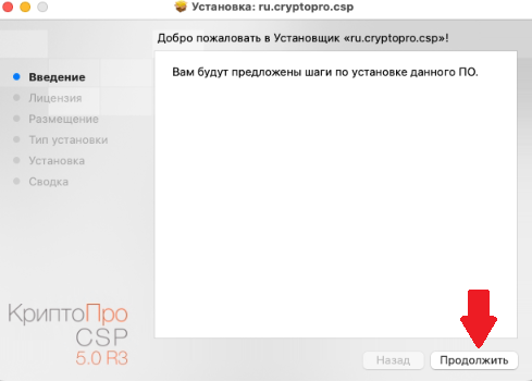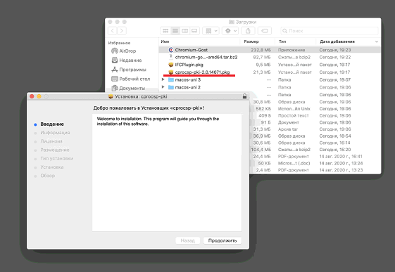 2. Запустите файл установщика cprocsp-pki-2.0.14071.pkg.