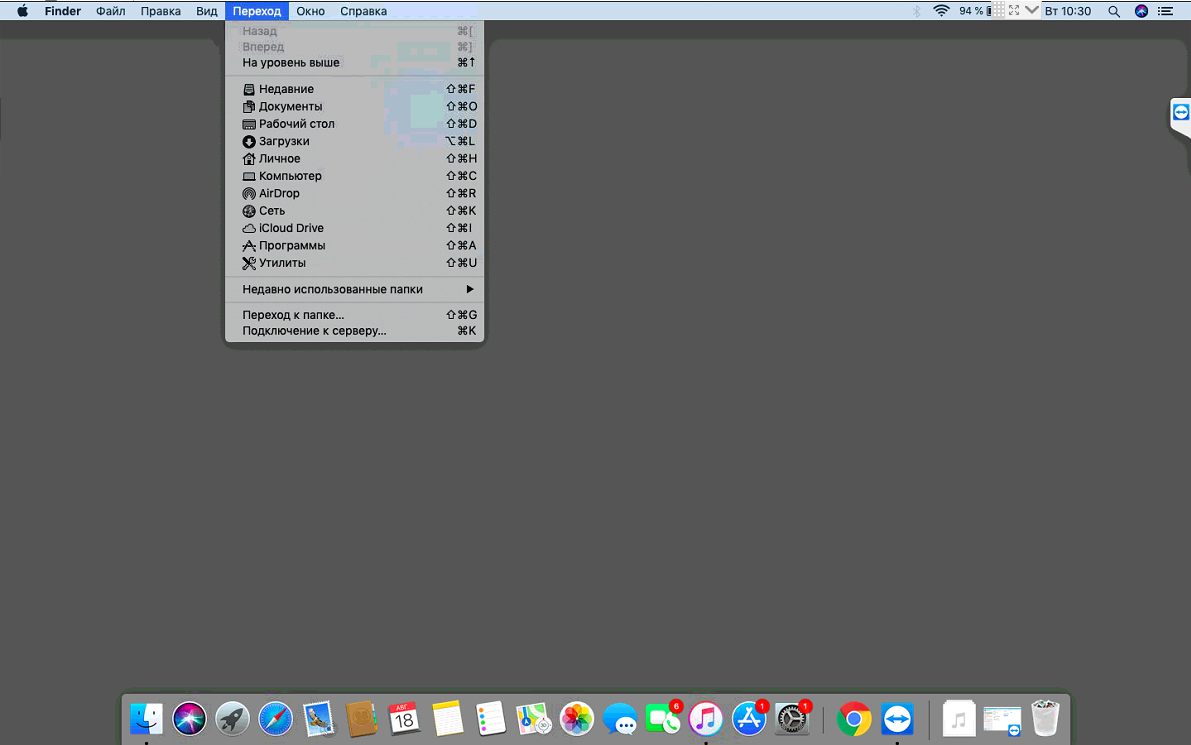 - Сверните все запущенные приложения, в верхнем меню выбирайте вкладку «Переход», в открывшемся меню нажимаете раздел «Утилиты».