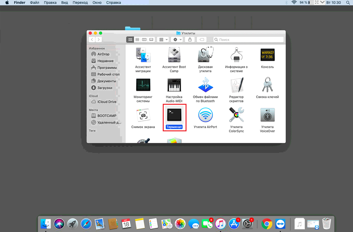 Запуск приложения macOS Терминал (Terminal).