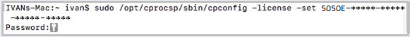 !!!ВАЖНО: номер лицензии необходимо вводить с дефисами. Для подтверждения ввода необходимо ввести пароль администратора. Ввод пароля не отображается в окне терминала. После ввода пароля нажмите Enter.