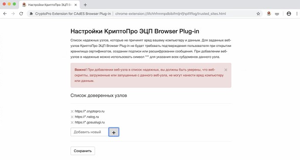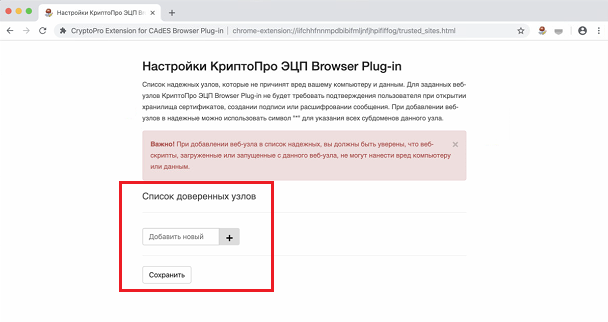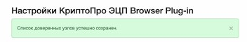 5. Жмем кнопку Сохранить. Должна появиться запись на зелёном фоне: «Список доверенных узлов успешно сохранен».