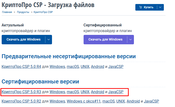 В случае, если у вас отсутствуют предустановленные криптопровайдеры, нажмите на ссылку «КриптоПРО 5.0» для скачивание дистрибутива с сайта КриптоПро.