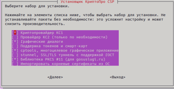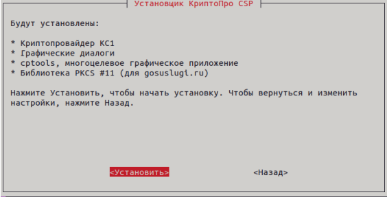 В процессе установки КриптоПро CSP в терминале отображается информация, какие именно библиотеки/модули распаковываются и устанавливаются: